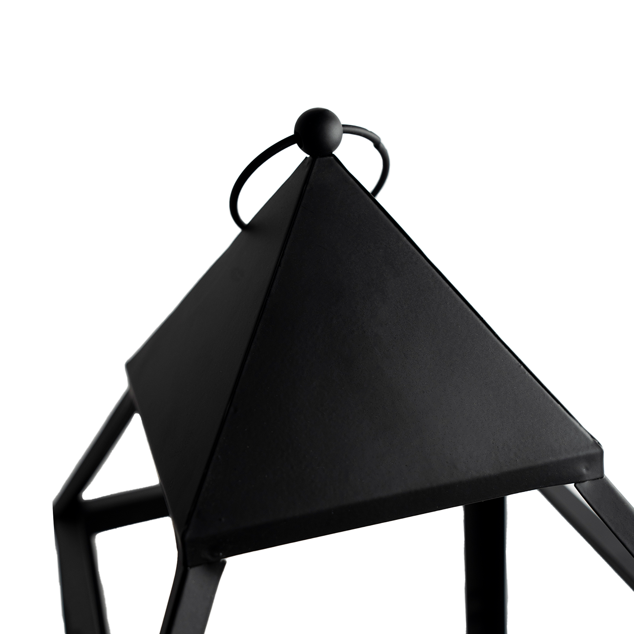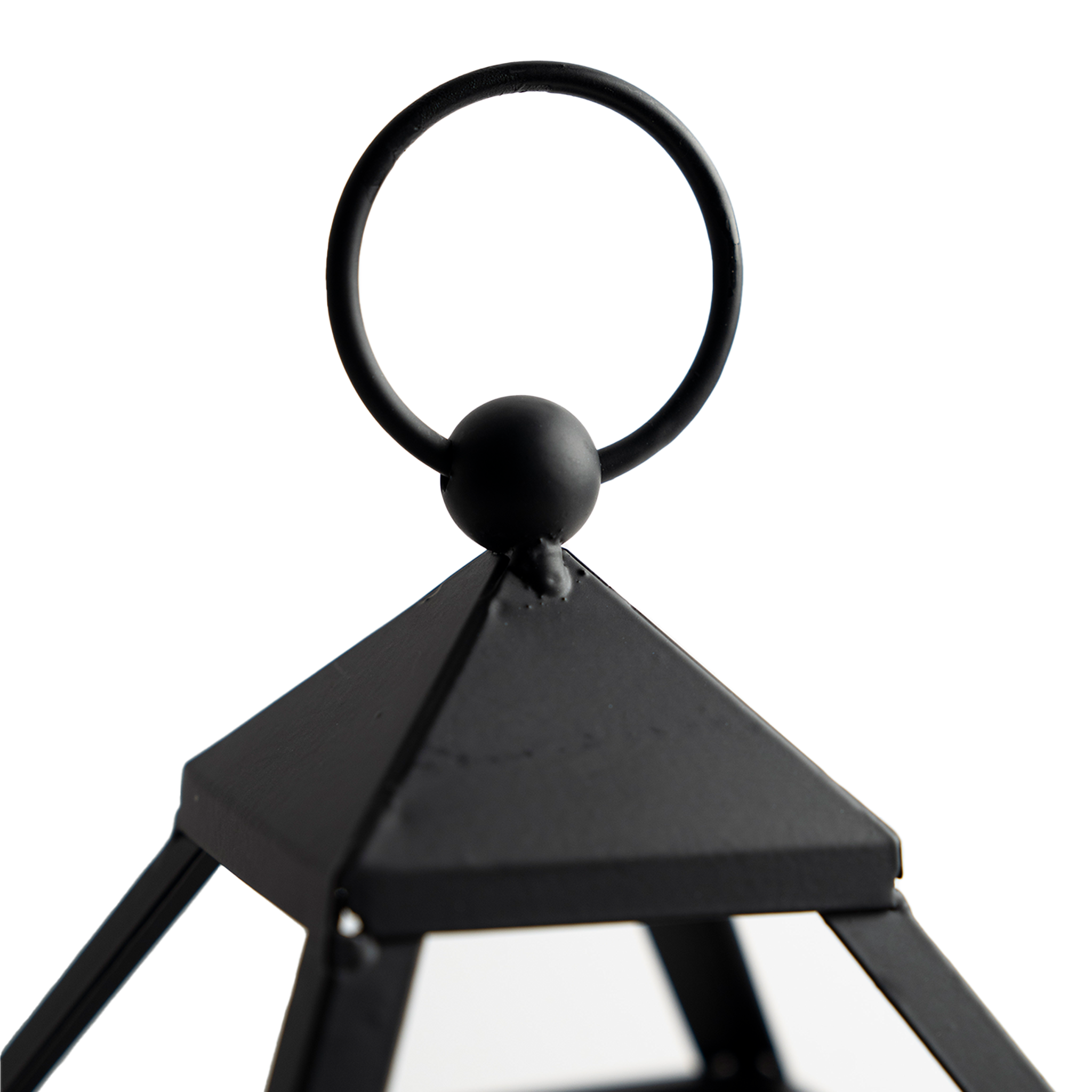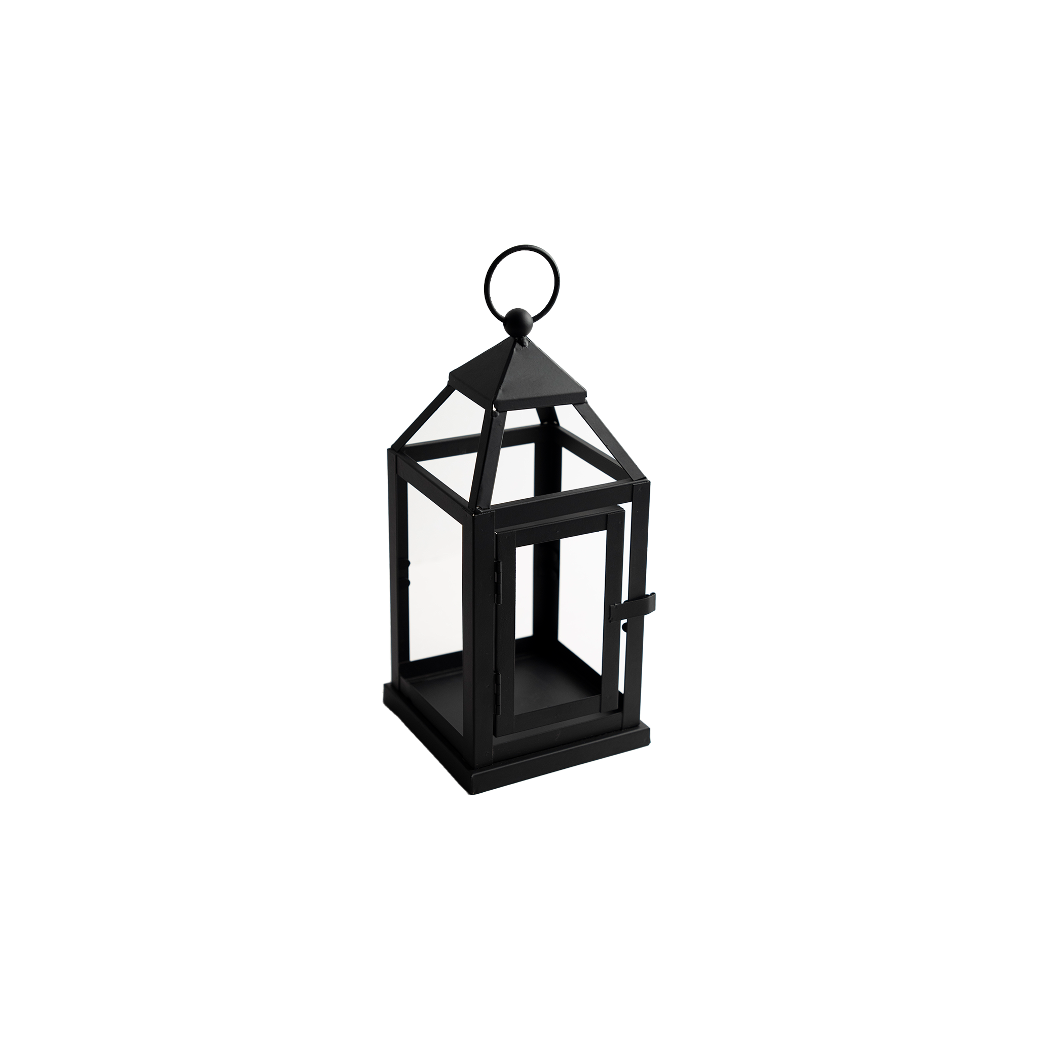 يتميز فانوس معدني أسود بتصميم عصري أنيق، مع ألواح زجاجية وإطار معدني متين. يسمح هيكله المفتوح بدخول ضوء الشموع الناعم، مما يخلق أجواءً دافئة ومريحة. مثالي للأماكن الداخلية والخارجية.