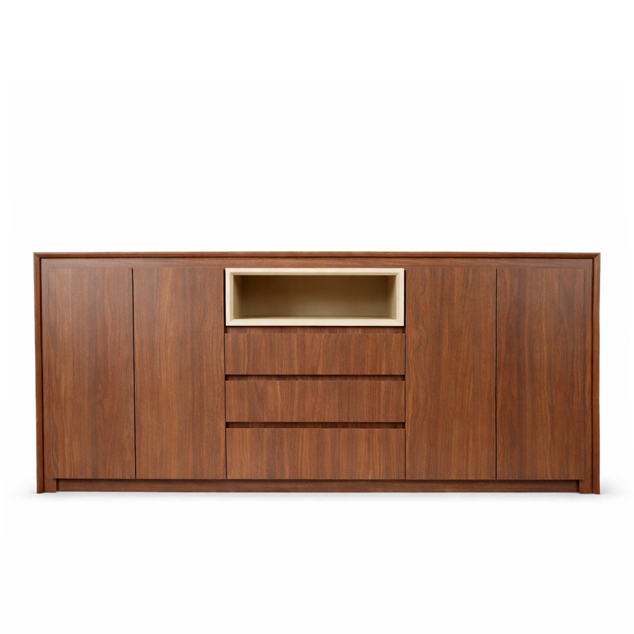 A modern buffet/Console made of wood with ample storage space, ideal for dining or living rooms.