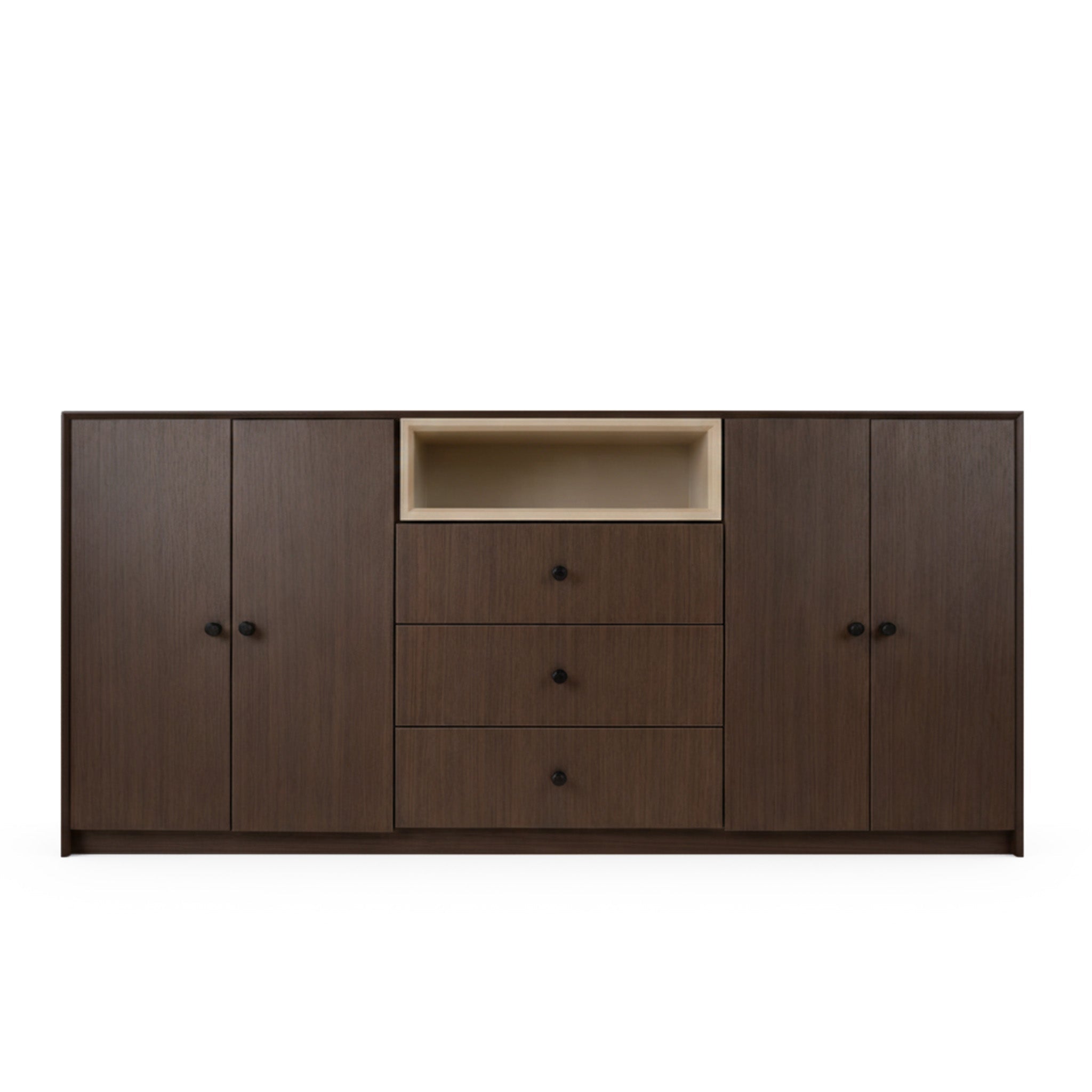 A sleek and modern buffet crafted from high-quality wood, designed with metal handles for a refined touch. Ideal for dining or living spaces